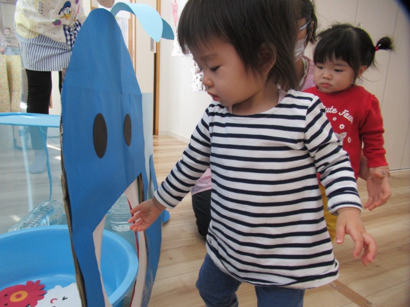 くじらさんにお魚を食べさせるのが楽しくて