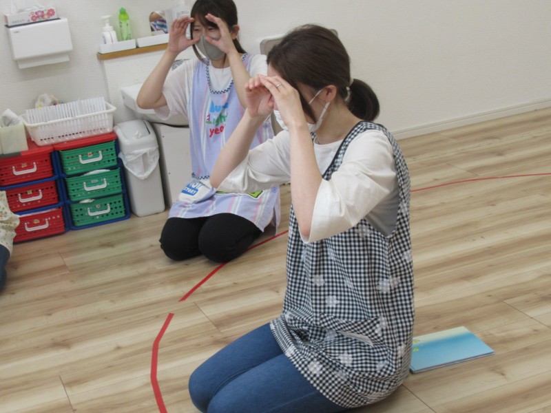 【水族館ごっこ遊びの導入の様子】~手遊び歌(水中めがねの手遊び)
