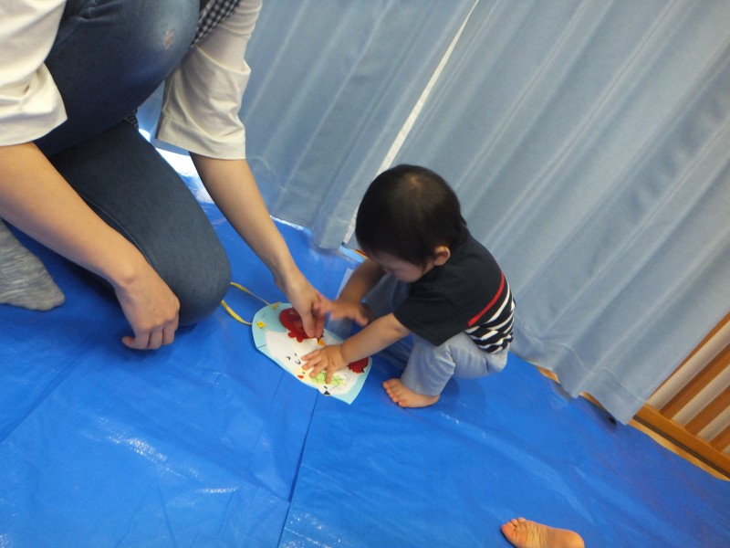 海の中には、どんな生き物がいるのかな~???と問いかけながら、一緒に「たこ、いか、くらげ」等に生き物に変身してみました☆