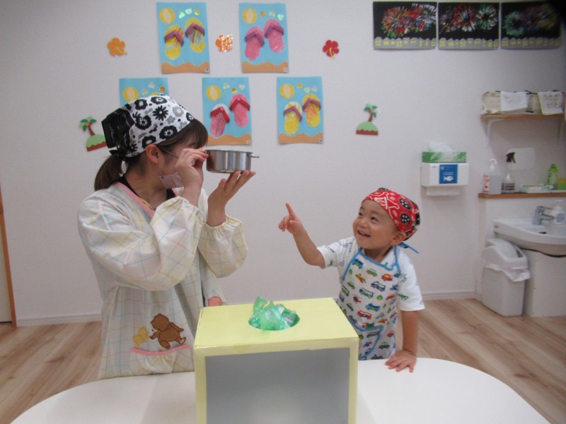 ふしぎな、ふしぎな箱の中を、今からみんなで触って何が入っているかを、当ててみよう~