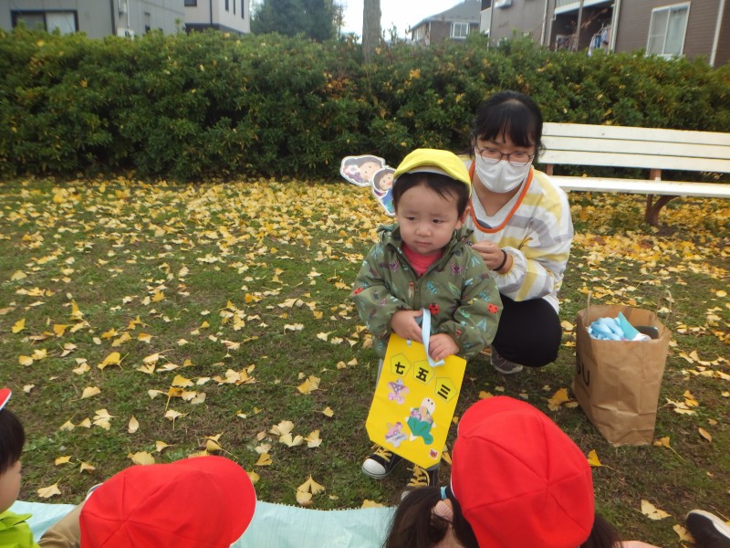 「このカボチャみてみて!保育園の畑で採れたカボチャなんだよ!おもしろい形だね!」