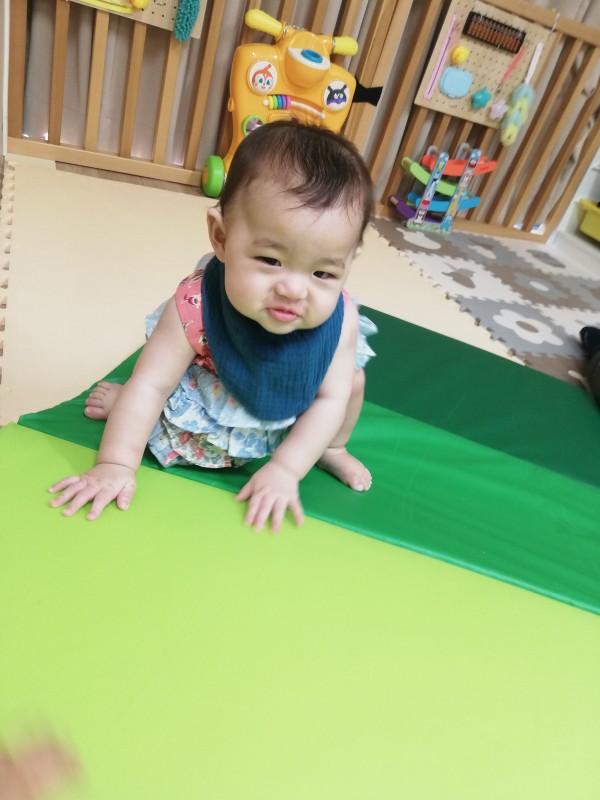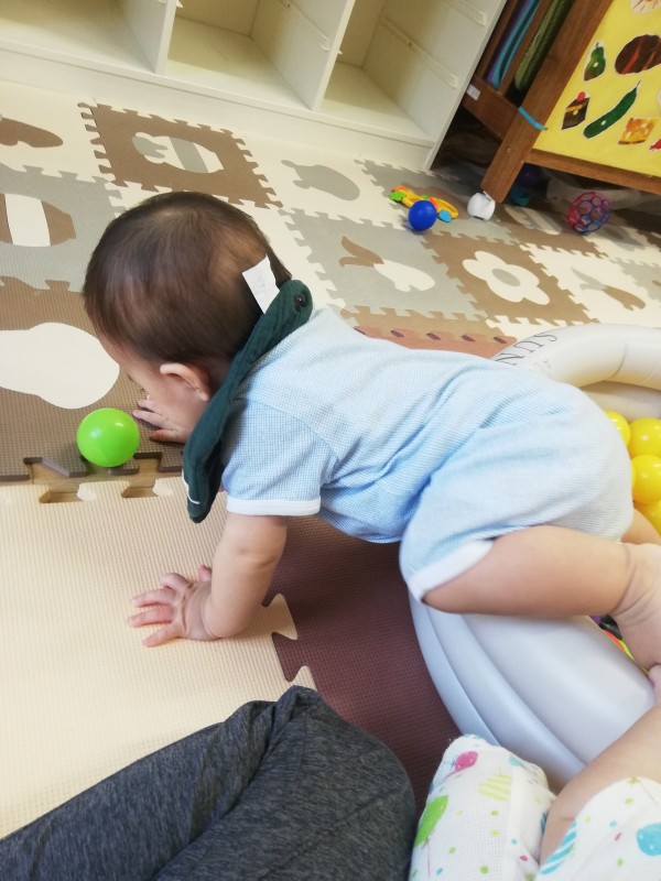 自分からとても上手にプールの外へハイハイで出ていっていましたよ✨