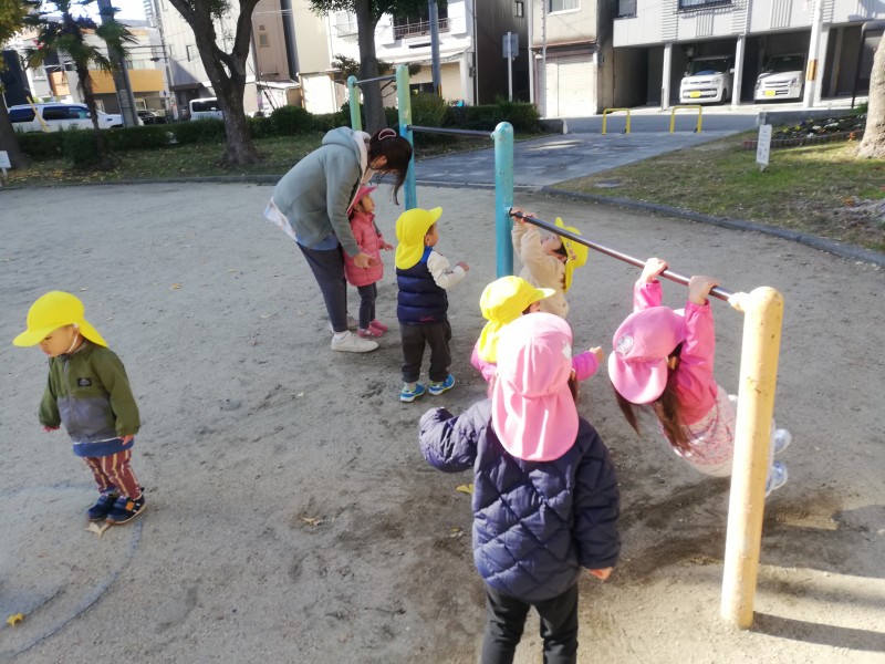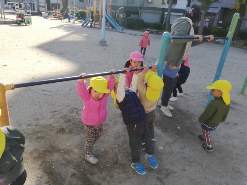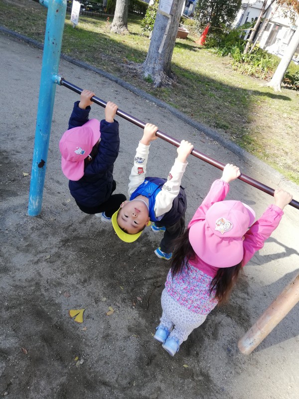 鉄棒もしました✨一人のお友達がブラ~ンとぶら下がると、続いてみんなもブラ~ン