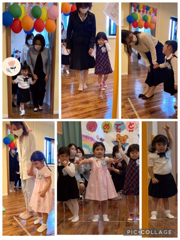 新しいクラス・先生の発表をして「がんばるぞー‼エイエイオー」と気合を入れた後は、パネルシアターや手遊び、お遊戯を楽しみました❤