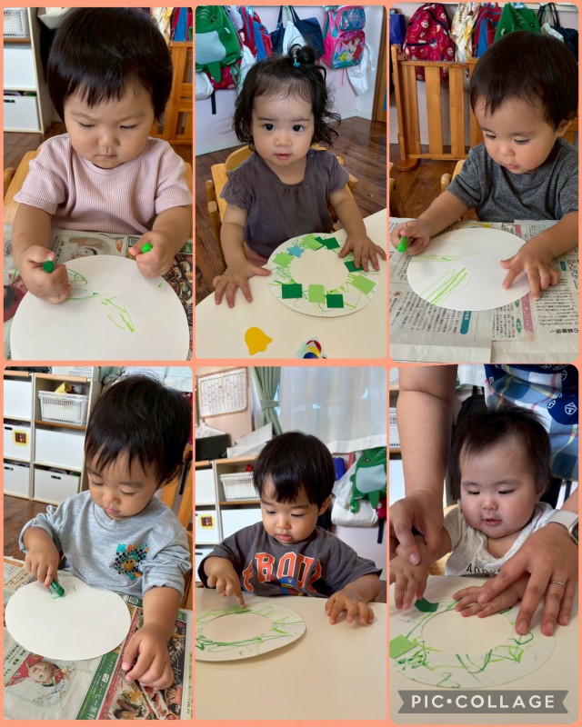 クレヨンを一生懸命握って、かきかき♬みんなワクワクした表情で取り組んでいましたよ![]()